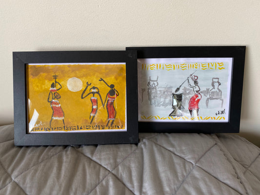 Designed and intricately painted, these 5x7 mini-paintings are a beautiful tribute to the vibrant landscape and culture of Uganda. Painted by three talented artists at The Artisan Center Dorset Carroll, Kaytee Samuel, and Edgar Acana.